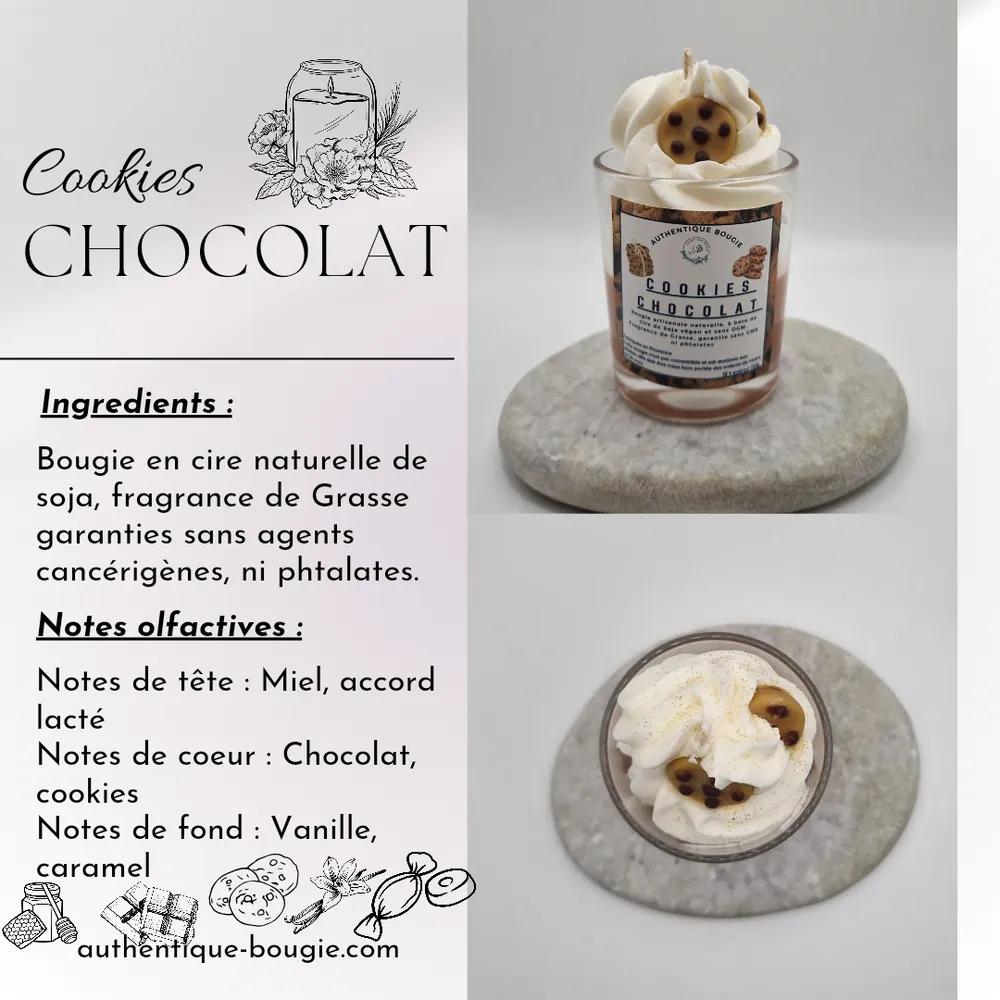 Laissez vos sens s'évader, avec l'odeur gourmande cookies chocolat qui vous transportera dans un voyage olfactif à la sortie du four qui vous rappelleront sûrement des souvenirs.