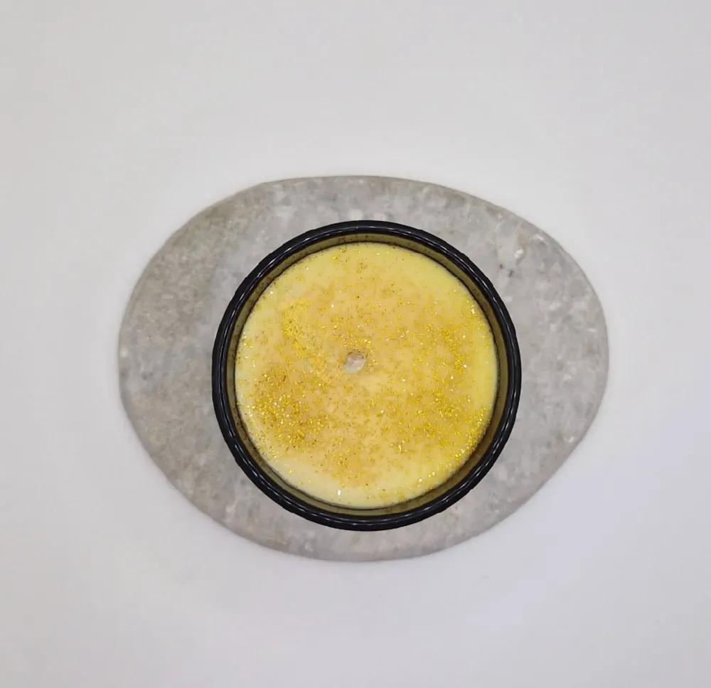 Bougie en cire de soja végan sans OGM, à base de parfum de Grasse, garantie sans agents cancérigènes, ni phtalates, mèche en coton. Pot réutilisable.