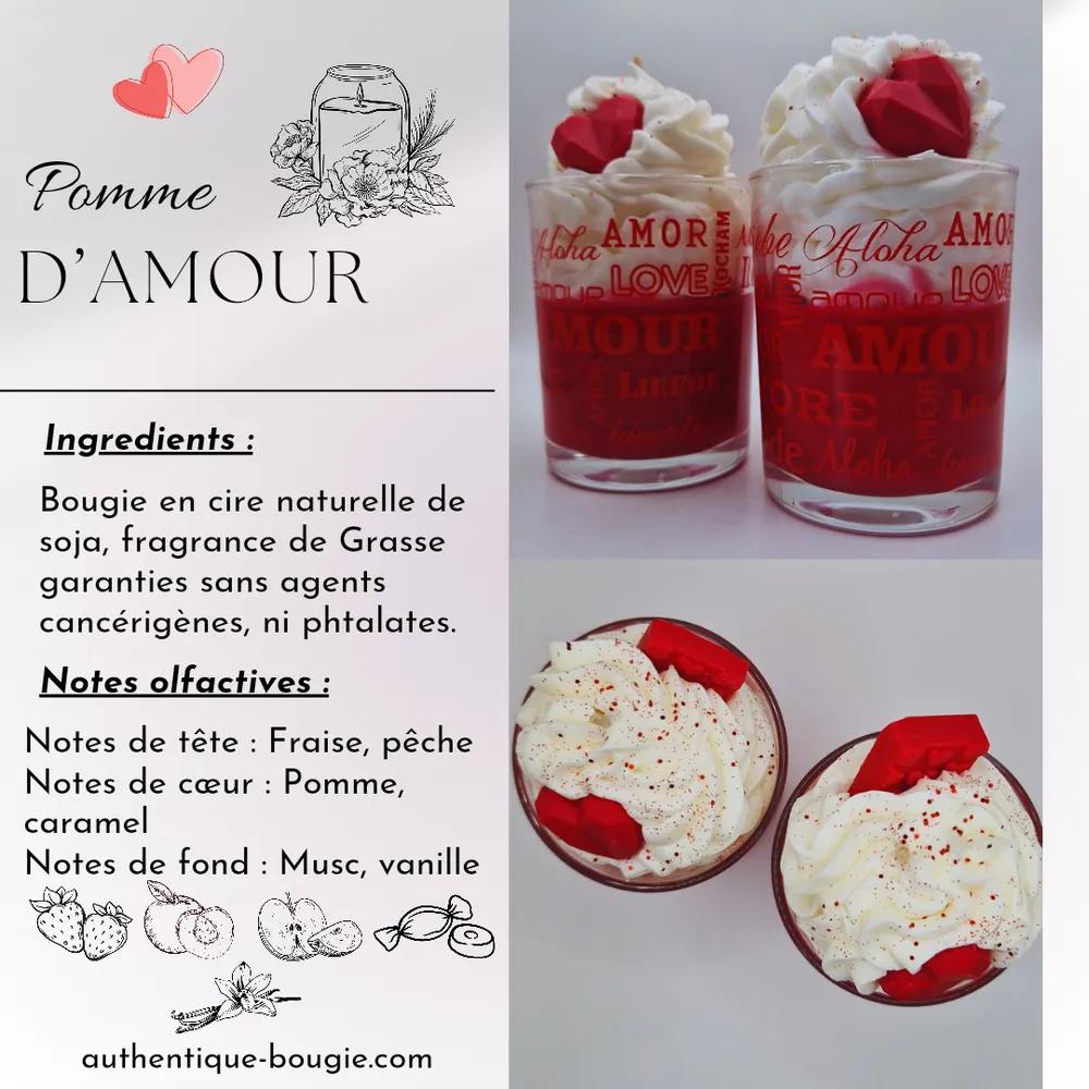 Laissez vos sens vous transporter dans vos souvenirs avec l'odeur Pomme d'Amour qui vous rappellera des odeurs de fête foraine avec ses notes sucrée et gourmande.