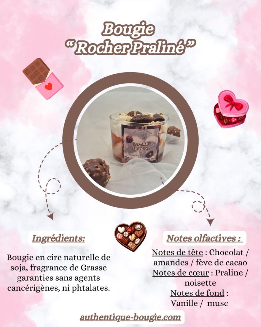 Laissez vos sens s'évader, avec l'odeur gourmande roché praliné qui vous transportera dans un voyage olfactif qui vous fera penser à une sucrerie appréciée avec ses notes de chocolat, noisette.